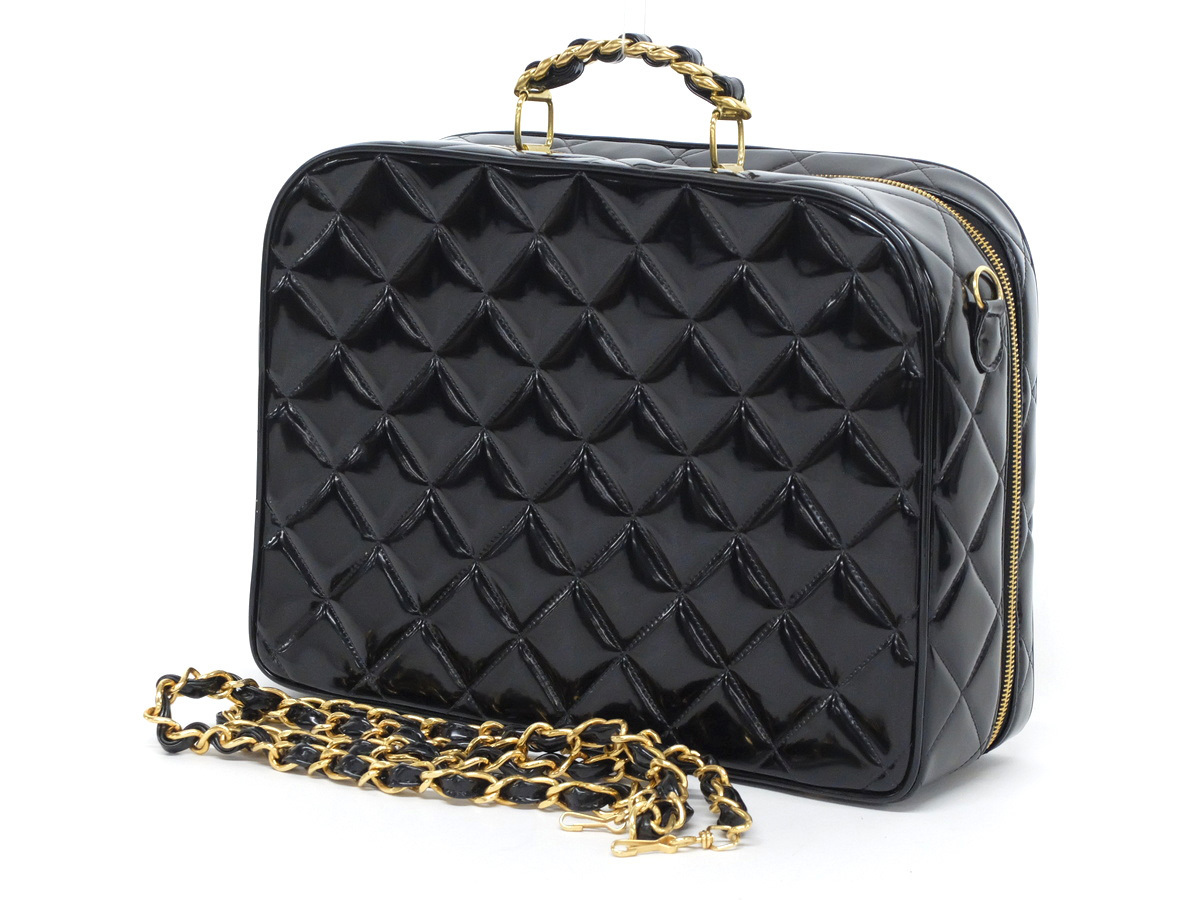 期間限定 美品【CHANELシャネル】マトラッセ バニティケース 2way ハンドバッグ チェーンショルダー エナメル ブラック 黒 ストア