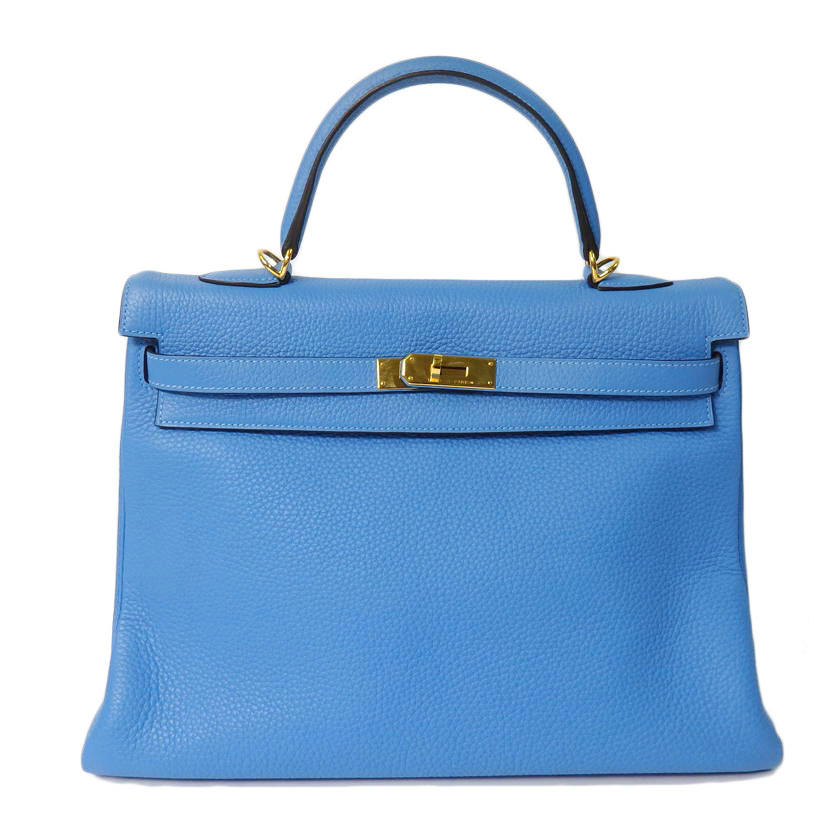 HERMES/エルメス/ケリー35/ゴールド金具/トリヨンクレマンス/ブルーパラダイス/内縫い/□R刻*****/ハンドバッグ/Aランク/84【中古】